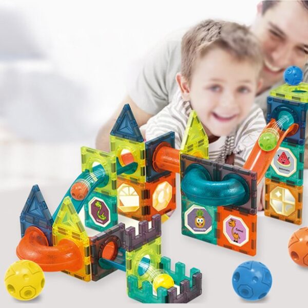1. With these magnetic tilels, kids can build what they dream, plane shapes or 3D construction. Different colors and shapes design can teach the baby to recognize various figures and color.