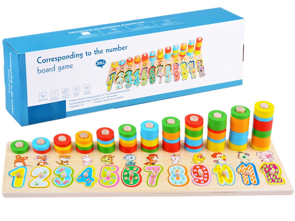 It’s never too early to learn! The earlier your kids start learning, the larger brain capacity they may own. This 2 in 1 Math Learning Toy can offer many educational activities: Sorting and stacking colourful rings, counting the pieces, learning number symbols, naming the colours, comparison between length and length of pegs, shape sorting…endless fun and knowledge. A great preschool teaching toy for encouraging sorting, and critical thinking skills, while putting the blocks to the corresponding holes can help your child with developing fine motor skills, dexterity, and hand eye coordination. The vivid colours can attract the attention of children quickly, the various shapes can inspire kids’ interesting to play and learn. The whole set including: A wooden board + 10 wood blocks with different shapes + 11 Small Wooden Stakes + 66 circles. Made of multiple layers of water-based natural wood,extremely resistant to touch or water. BPA-free. No bad smell or heavy metals. Full surface and edges are smooth and won’t hurt the baby’s delicate skin, absolutely safe for kids to play.