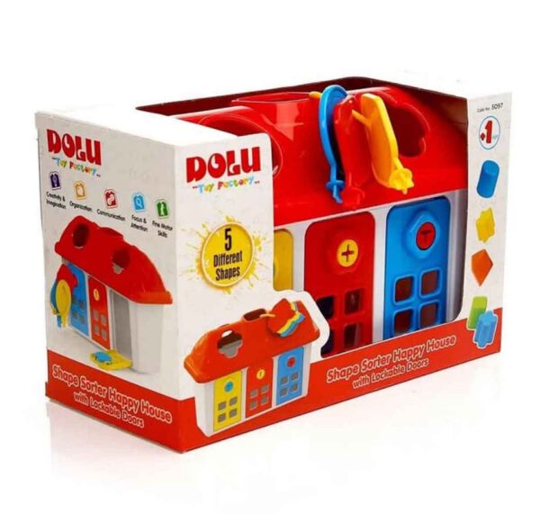 Dolu Shape Sorter Happy House with Lockable Doors is filled with big discoveries. This shape sorter house has brightly colored which helps in builds early shape, color, and size differentiation skills. This is very easy to operate and it is very interesting. Your baby has a great time, exercise with this shape sorter house and it will develop your baby’s ability to respond at the same time. Your little baby will learn both geometric shapes and colors with this set. This toy consists of different geometric shapes, and colors which will improve the hand-eye coordination of your children. Dolu shape sorter house is made of non-toxic material is used that is safe for children.